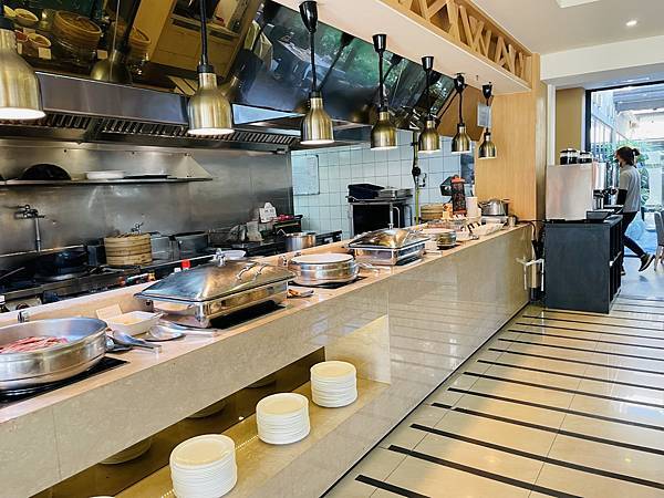 廚師在餐檯另一端現做美食,隨時提供熱乎乎的食物讓客人享用。