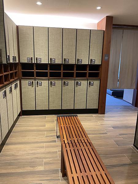 入場後櫃台會提供一個手環,手環的編號就是置物櫃的號碼,用手環上的磁扣即可開鎖。