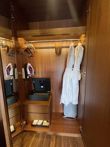 進門玄關處的大衣櫃,有浴袍、保險箱及燙斗